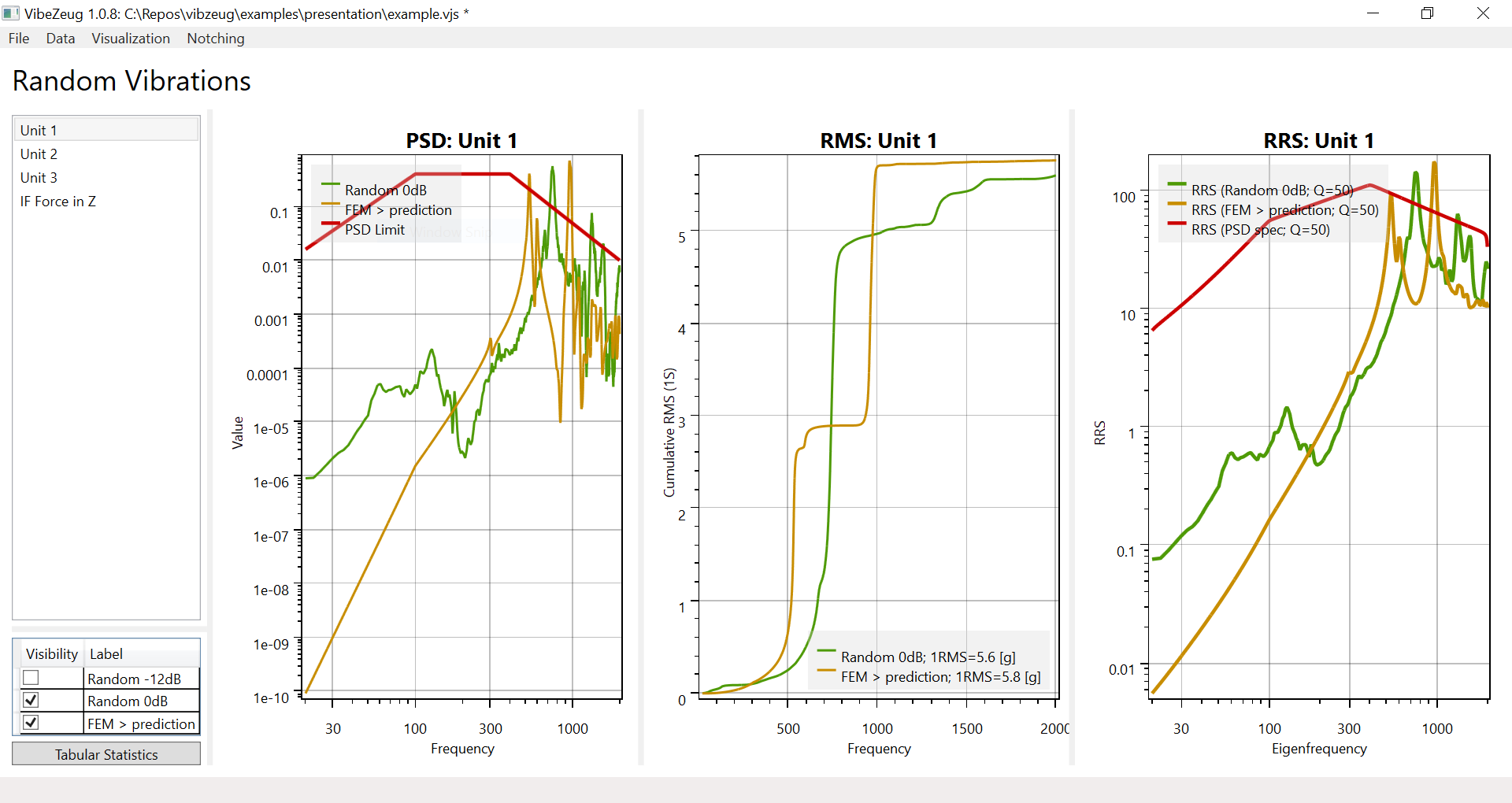 This tool is a Swiss Army knife for everything that concerns vibration testing and test prediction of the space payload: visualization, load extrapolations, transfer functions, overlays, notching, RRS and more.